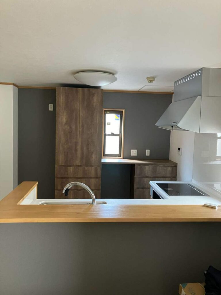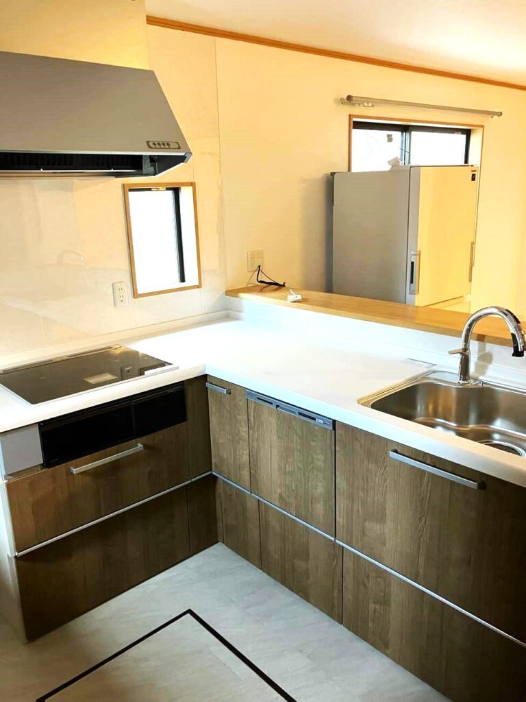 吊戸棚を取ってオープンタイプのカウンターキッチンにしてすっきりとした印象になりました。