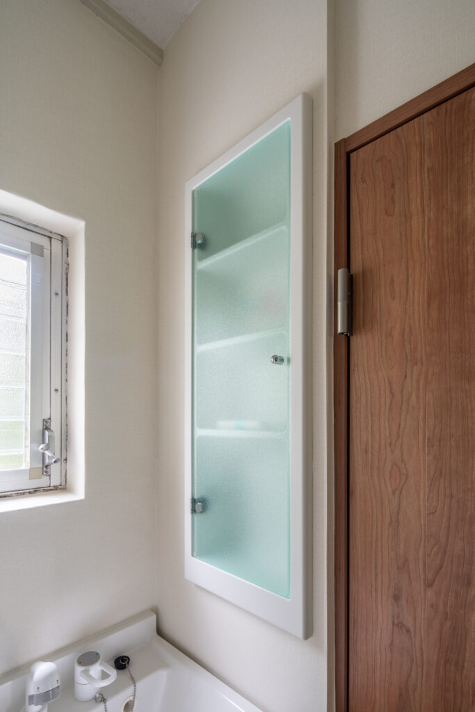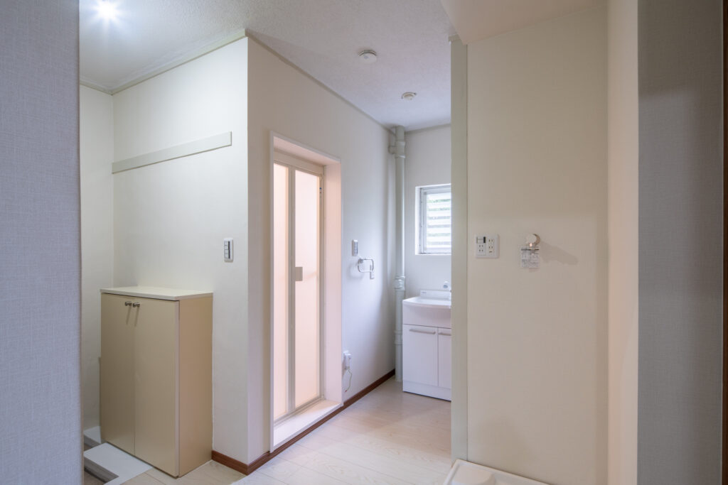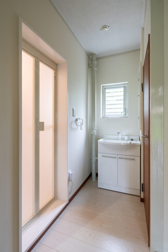 洗面台は、Panasonic 洗面ドレッシング エムライン。人造大理石を採用した「衝撃に強い洗面ボール」が特徴です。内装も全て新しくしたので、古さを感じさせない空間になりました。