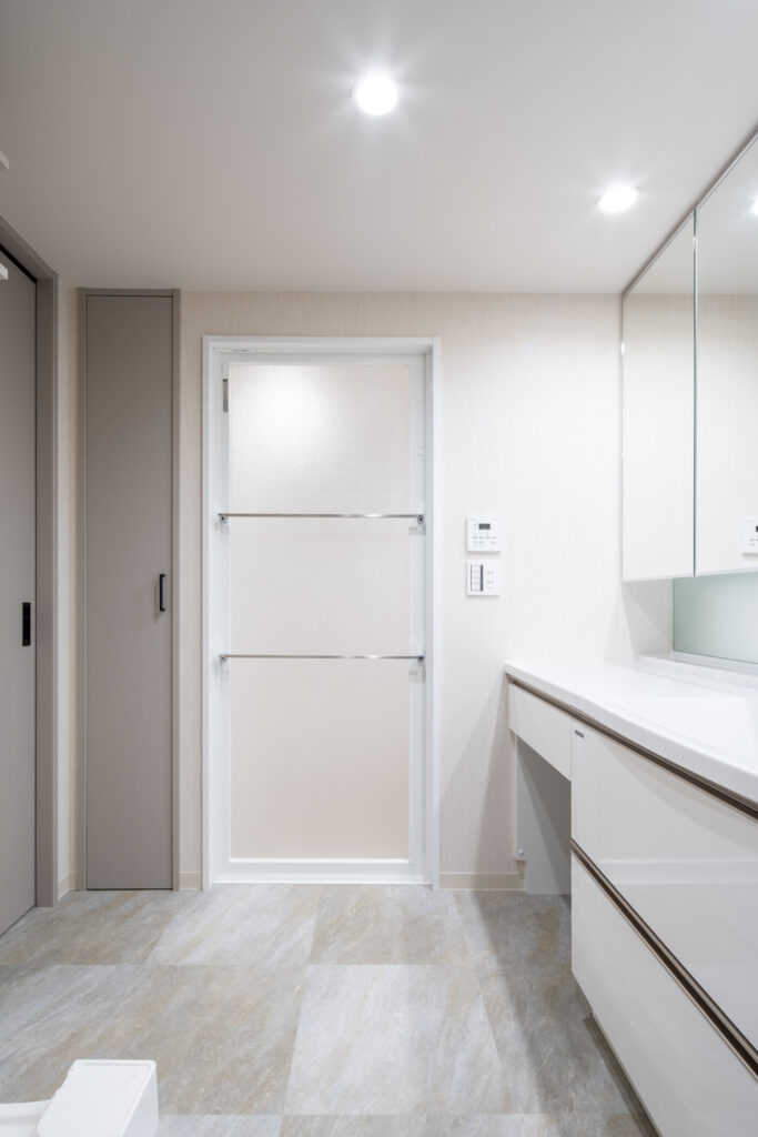 ユニットバスはタカラスタンダードのグランスパ。トレンドの大理石柄をアクセントパネルにすることで、高級感のあるバスタイムを演出します。