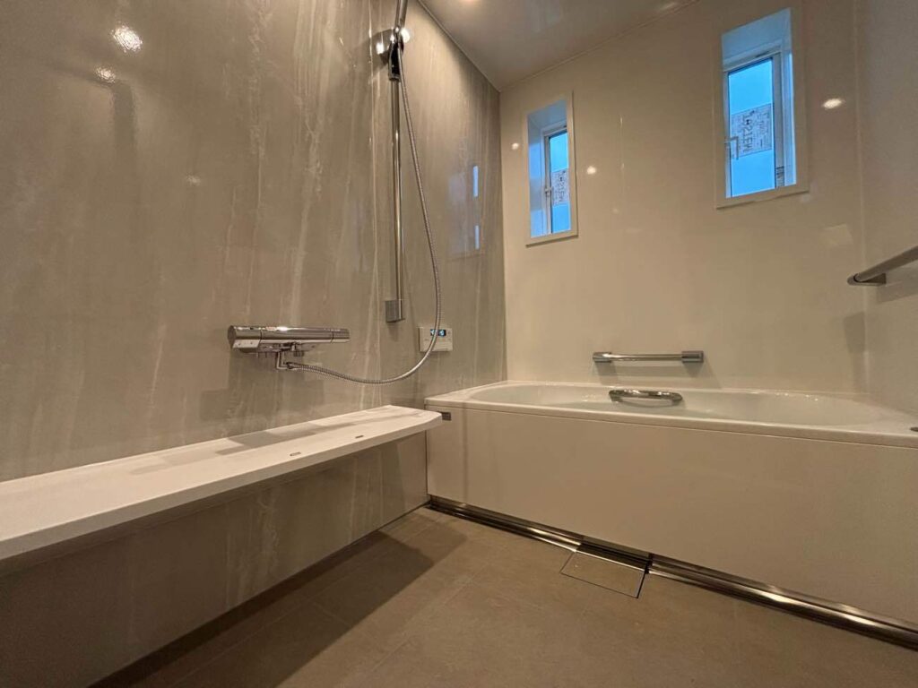既存の在来浴室を広げたため、一般的な規格サイズではなかったため、希望の奥行・間口で選べるこちらの商品をお選びいただきました。